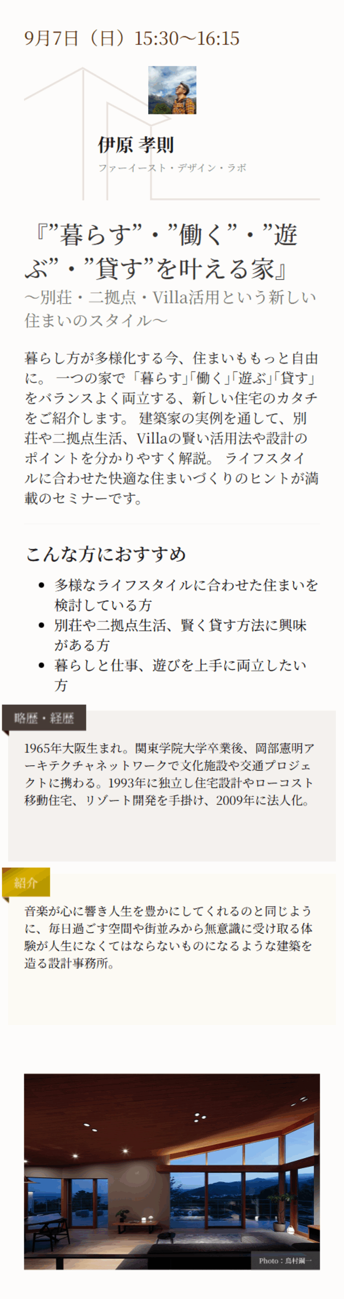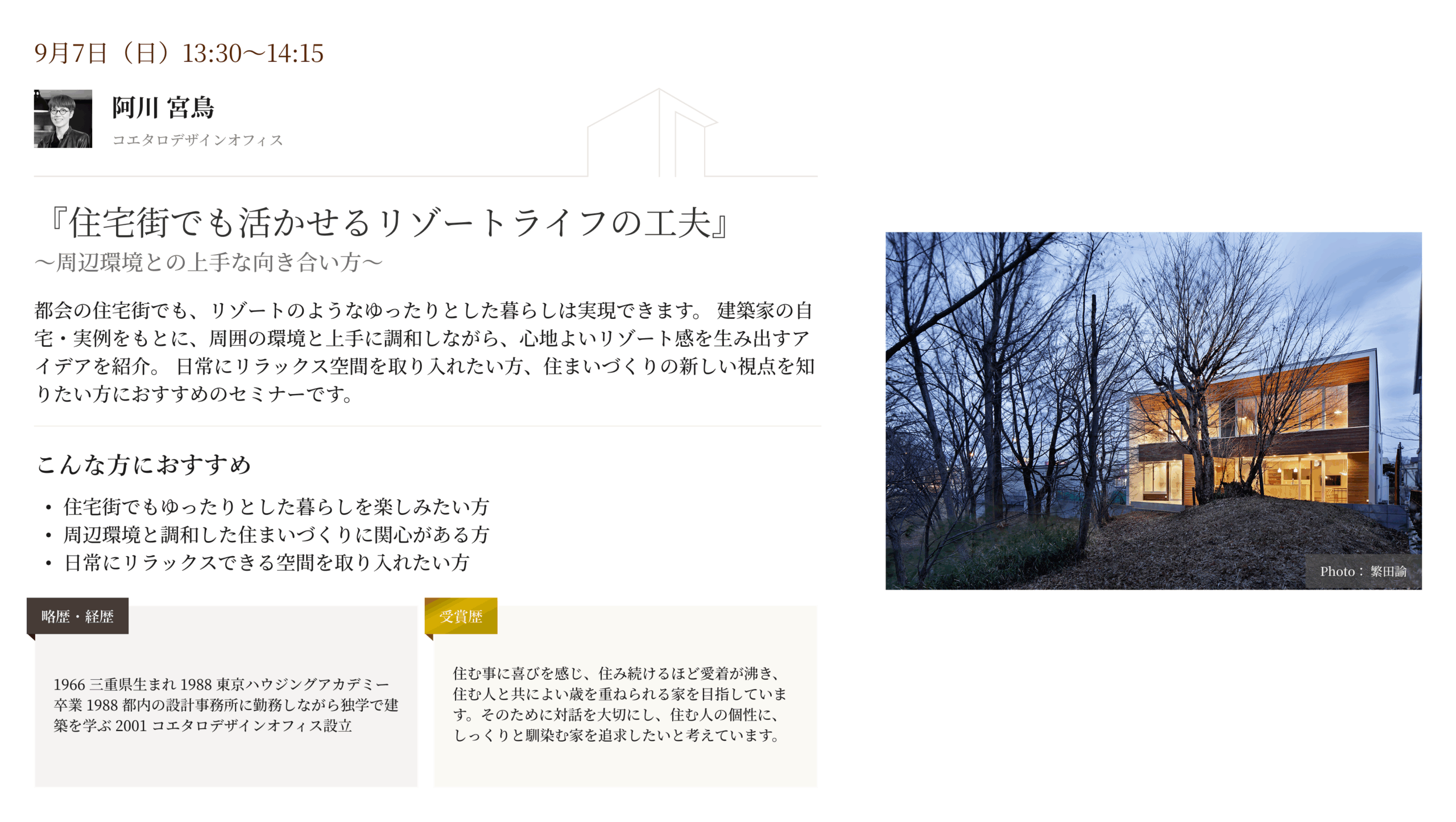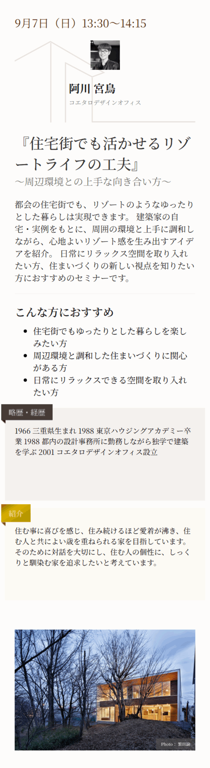 暮らしを豊かにするヒントが見つかるセミナーをご紹介します。