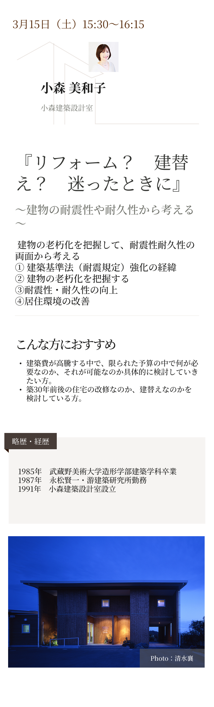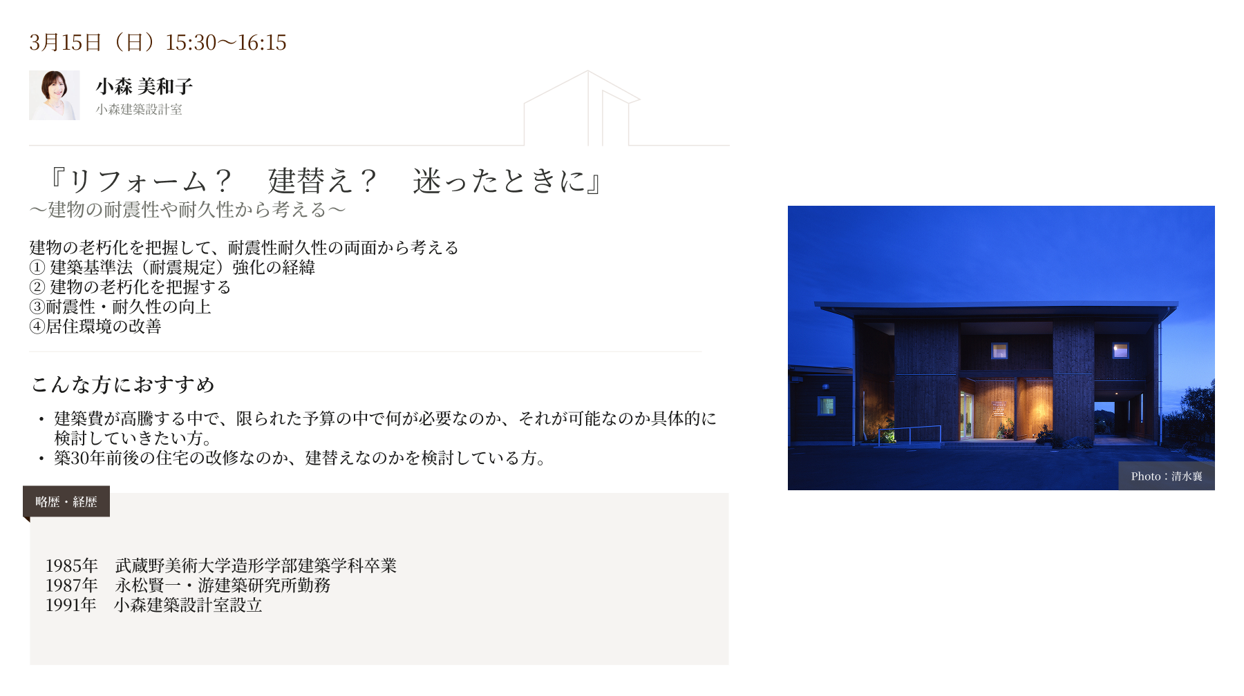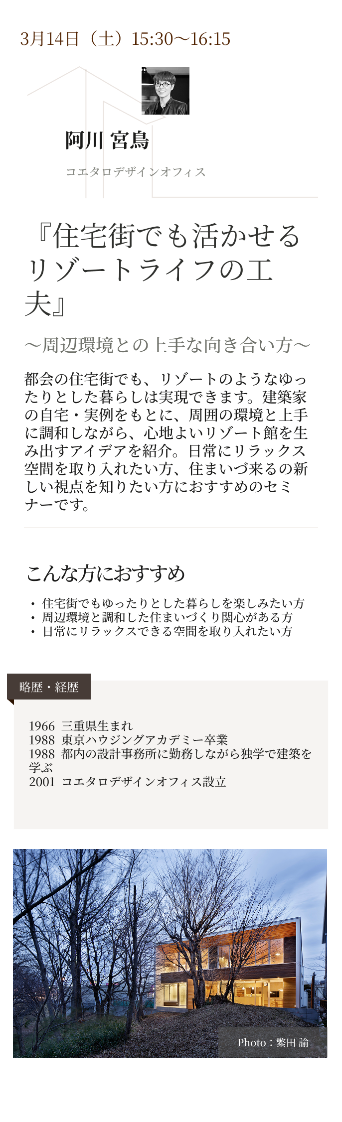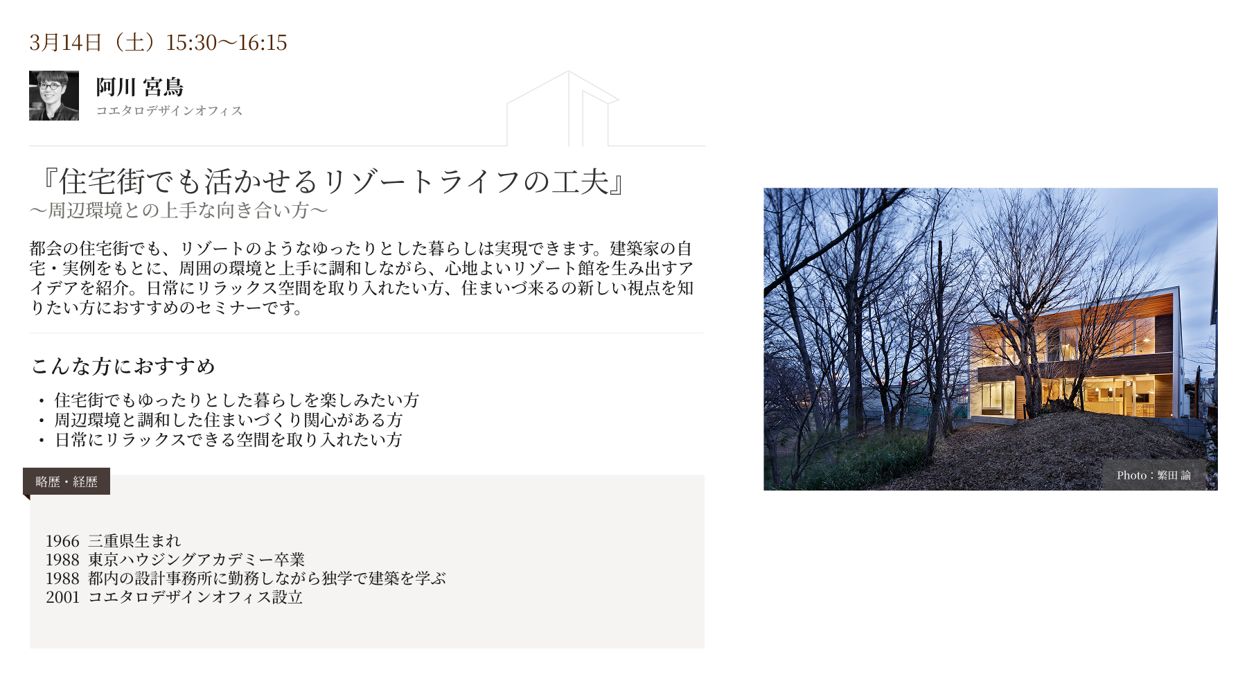 暮らしを豊かにするヒントが見つかるセミナーをご紹介します。