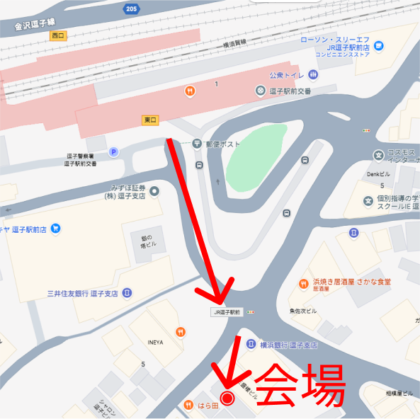 会場神奈川県逗子市逗子5丁目2-52 SALA逗子駅前ビル3階(JR逗子駅東口より徒歩4分)